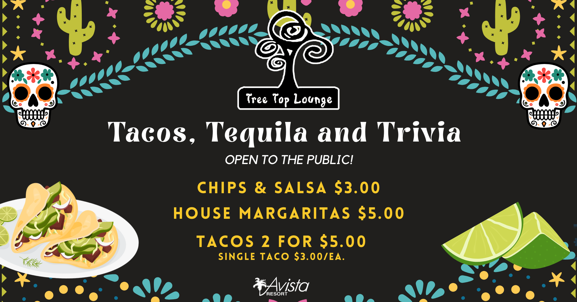 Spice up your Tuesday with a night full of flavor, friendly competition, and coastal charm. Our weekly Tacos, Tequila & Trivia Tuesdays event is a guest favorite! Start your evening at Tree Top Lounge with mouthwatering taco specials and handcrafted house margaritas while soaking in the lively atmosphere. Then at 5PM, grab your smartphone and join our interactive trivia game!